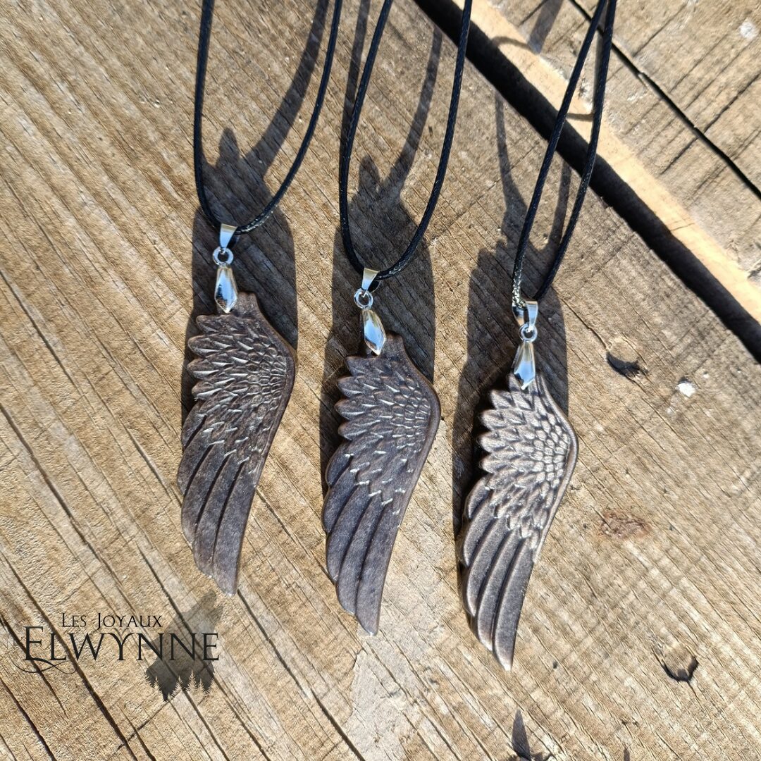 🪽 Pendentif Aile d’ange en Obsidienne argentée 🪽
