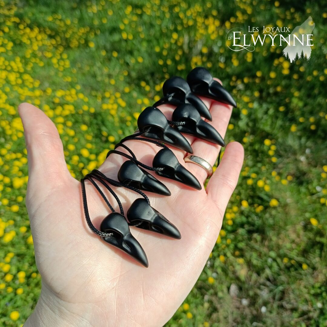Pendentif crâne de corbeau en Obsidienne noire 💀
