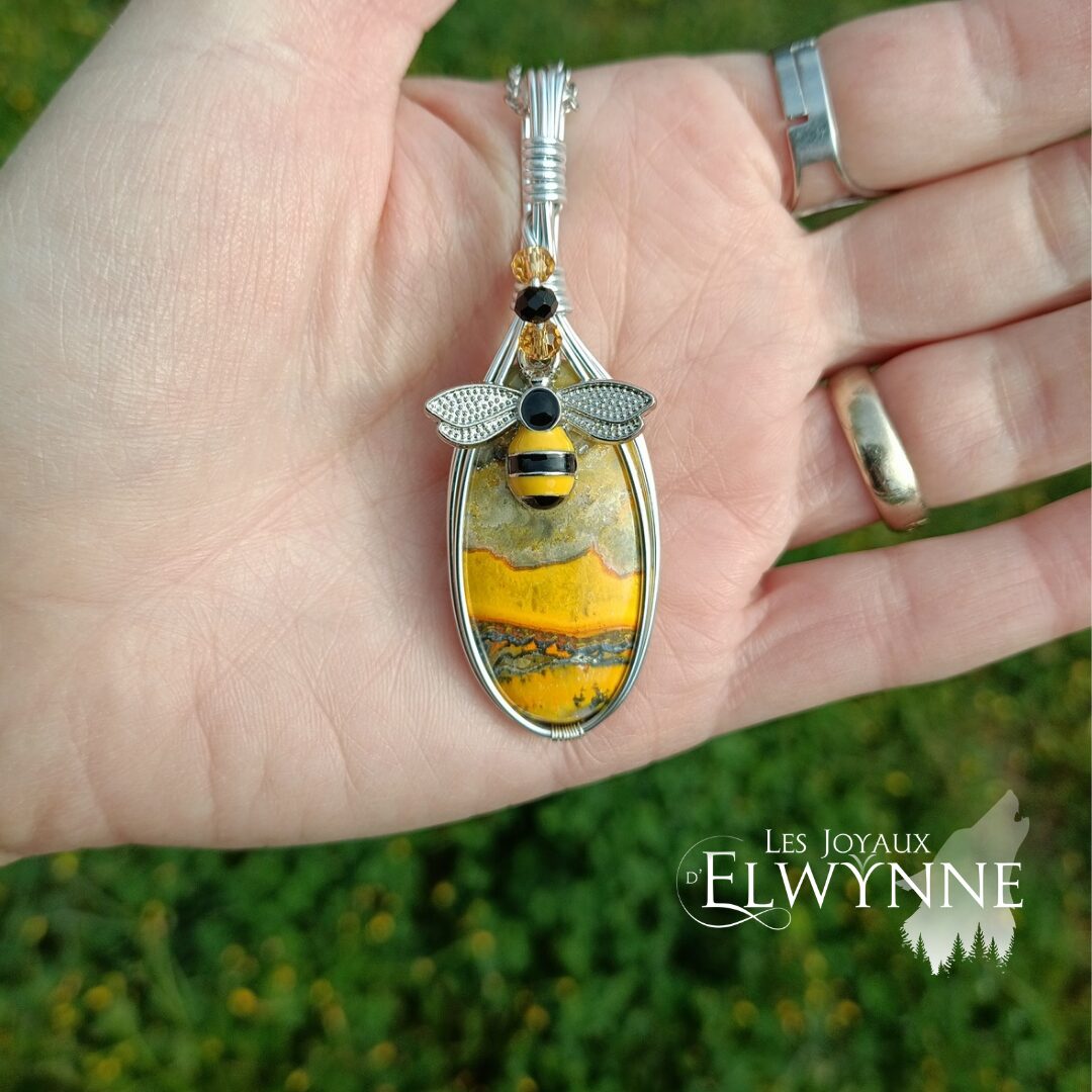 Pendentif en Jaspe Bumblebee et abeille