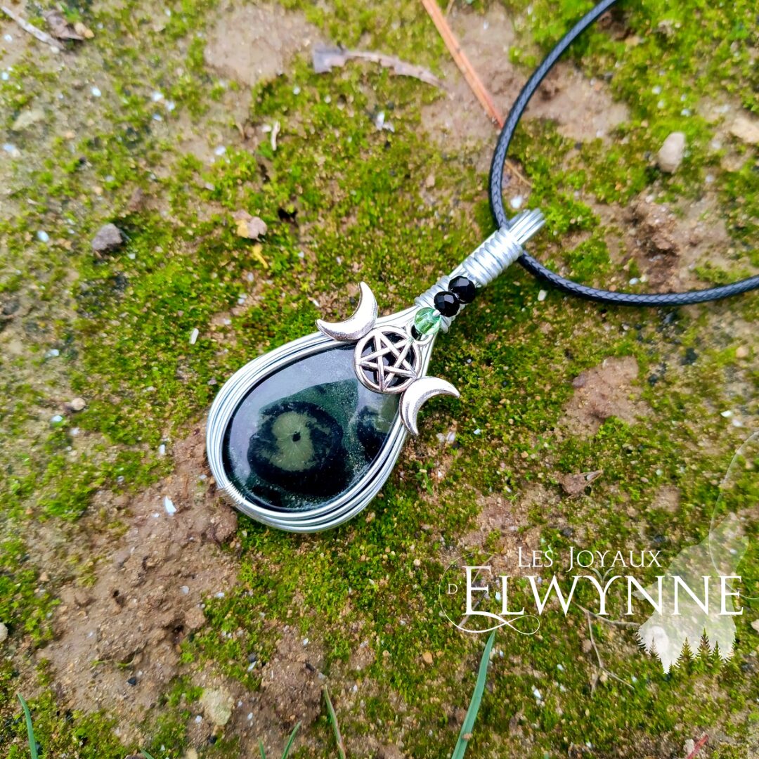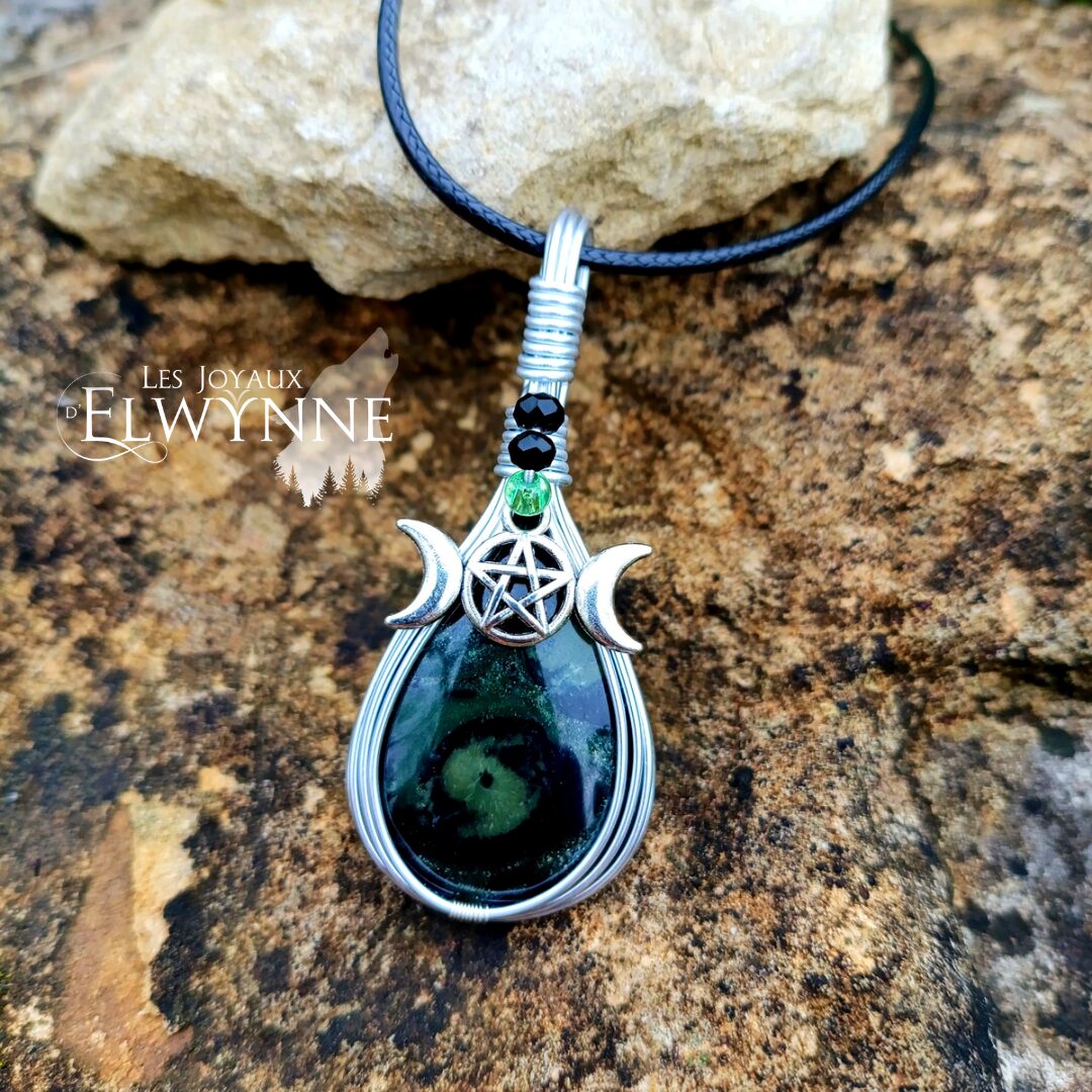 Superbe pendentif fait main en Jaspe Kambaba avec une Triple Lune 💚