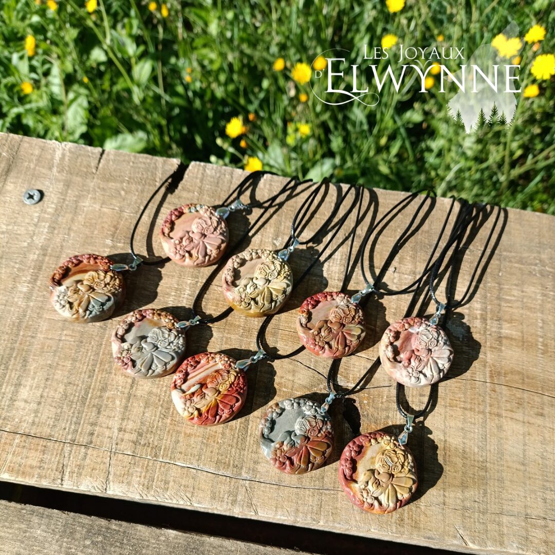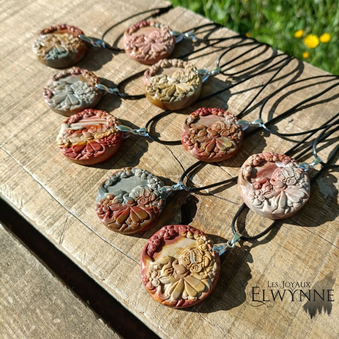 Magnifique pendentif Fée 🧚🏼 en Agate Alashan, avec bélière en argent 925 et cordon ciré noir.
