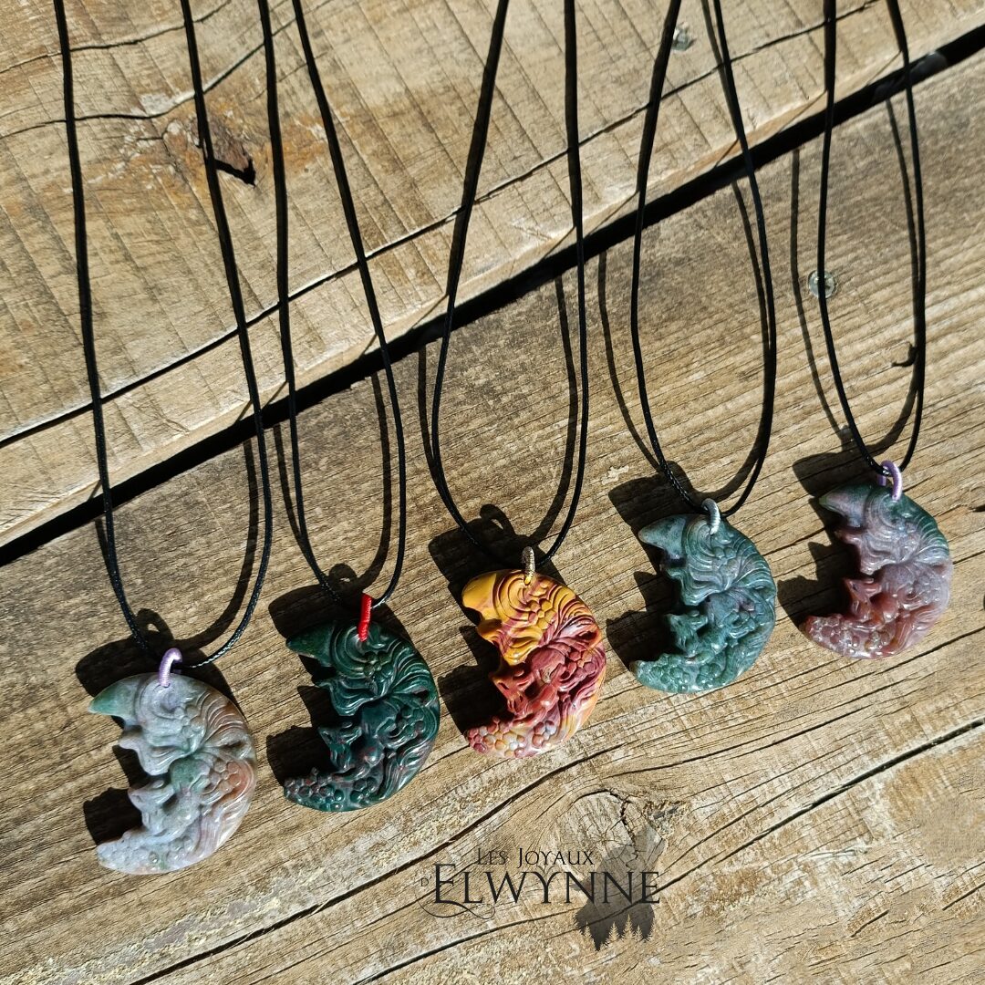 Pendentif Kitsune (Renard) en Agate Alashan 🦊 et son cordon noir ciré.