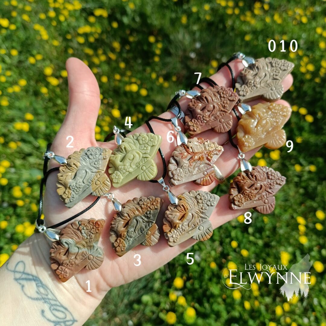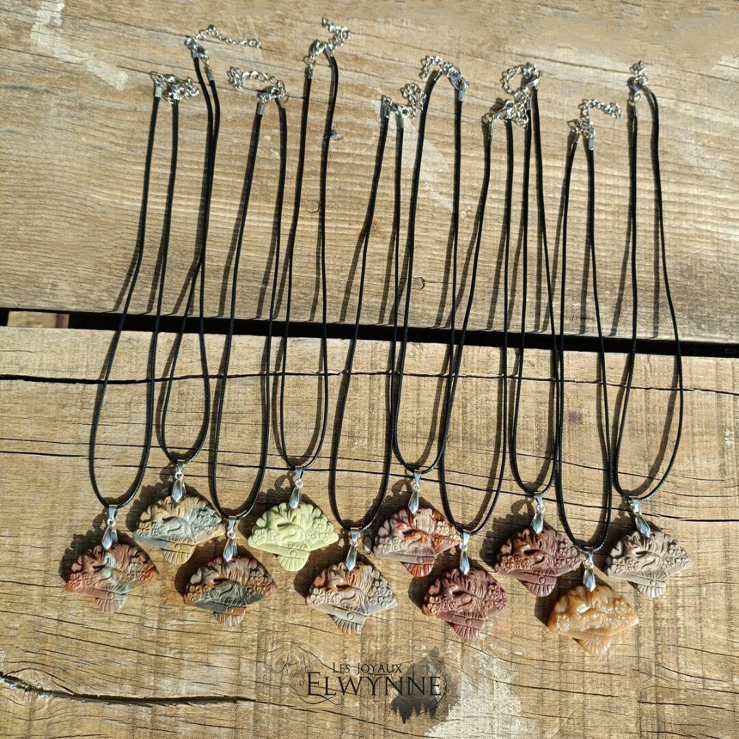 Pendentif Kitsune (Renard) 🦊 en Agate Alashan, bélière en argent 925, et un cordon noir ciré.