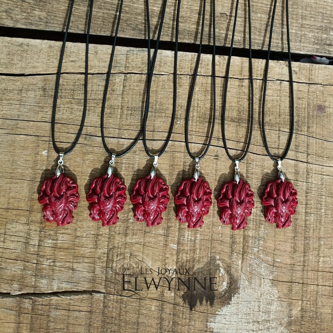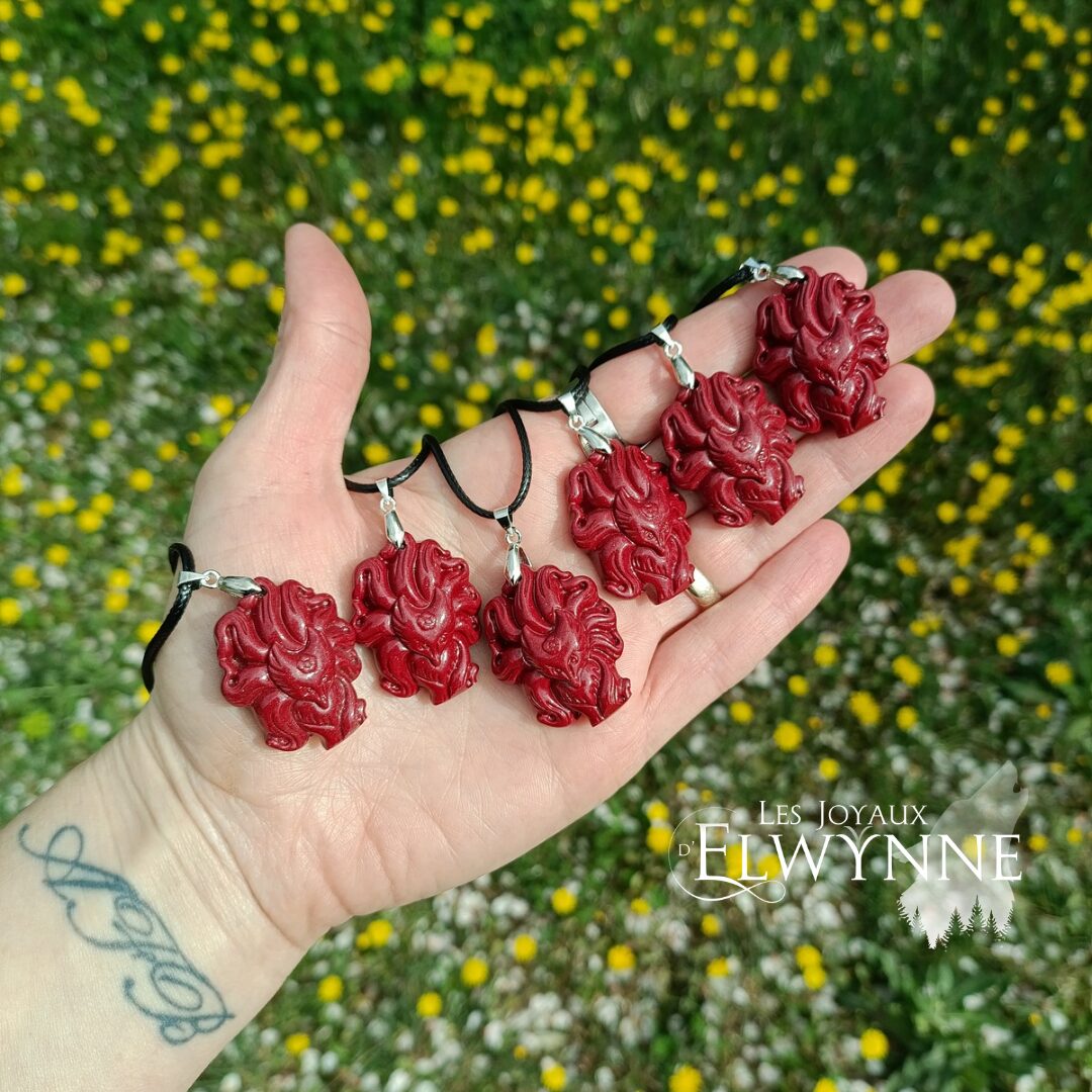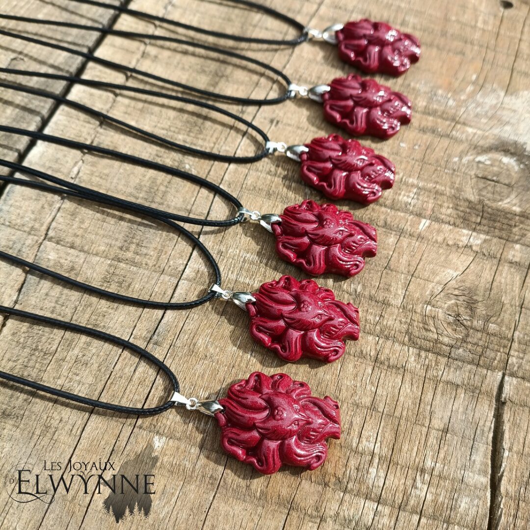 Pendentif Kitsune (Renard) en Cinabre 🦊, bélière argent 925, et son cordon ciré noir.