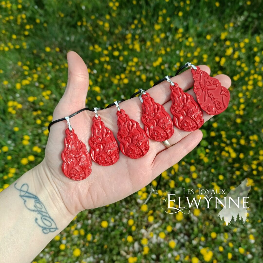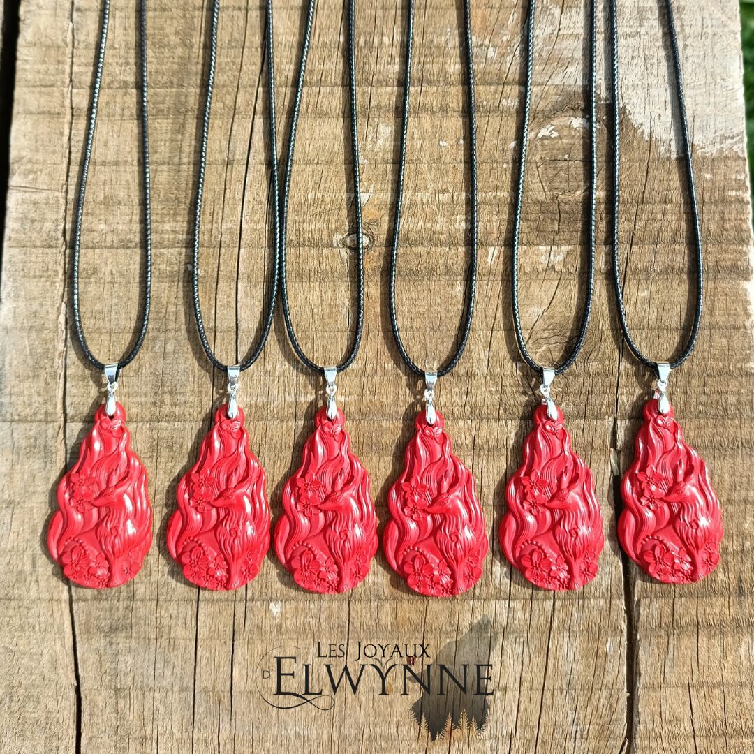 Pendentif Kitsune (Renard) en Cinabre