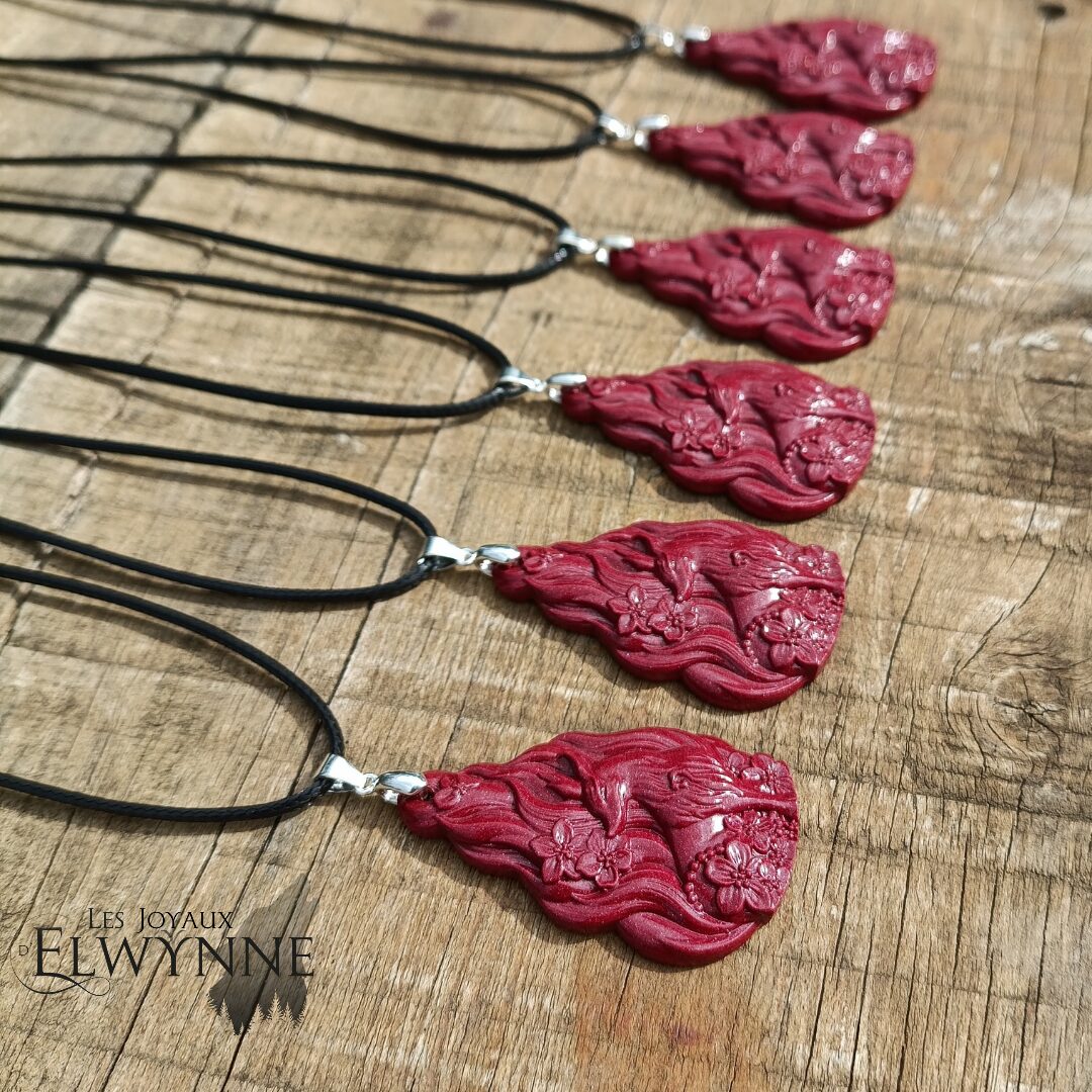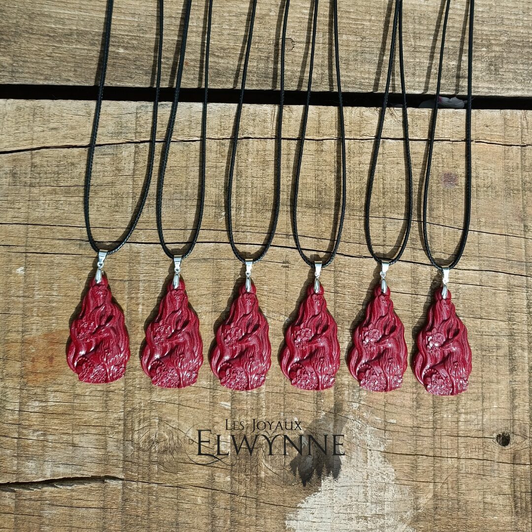 Pendentif Kitsune (Renard) en Cinabre