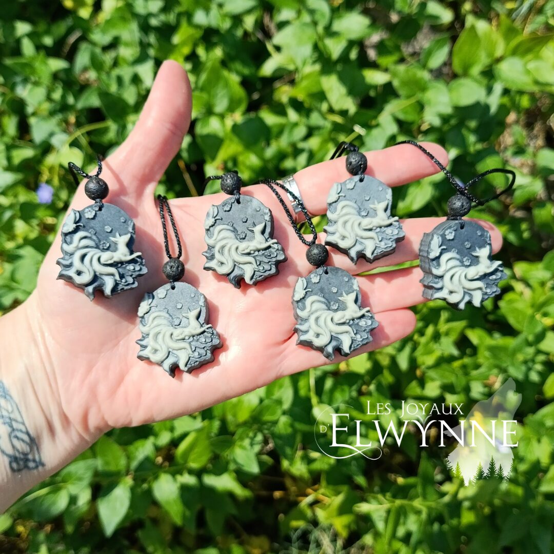 En composant ce talisman, j'ai voulu capturer l'essence d'un rêve éveillé. Imaginez un jardin suspendu dans l'azur, un havre de paix où chaque souffle est une caresse. Ce Kitsune est le gardien de cette harmonie : il est si rayonnant de calme que les papillons viennent naturellement danser dans son sillage. J'ai imaginé ce bijou comme une fenêtre ouverte sur votre propre lumière intérieure. C’est un rappel précieux que nous portons toutes en nous un ciel infini, pur et serein, où tout est possible et où la magie fleurit sans fin.