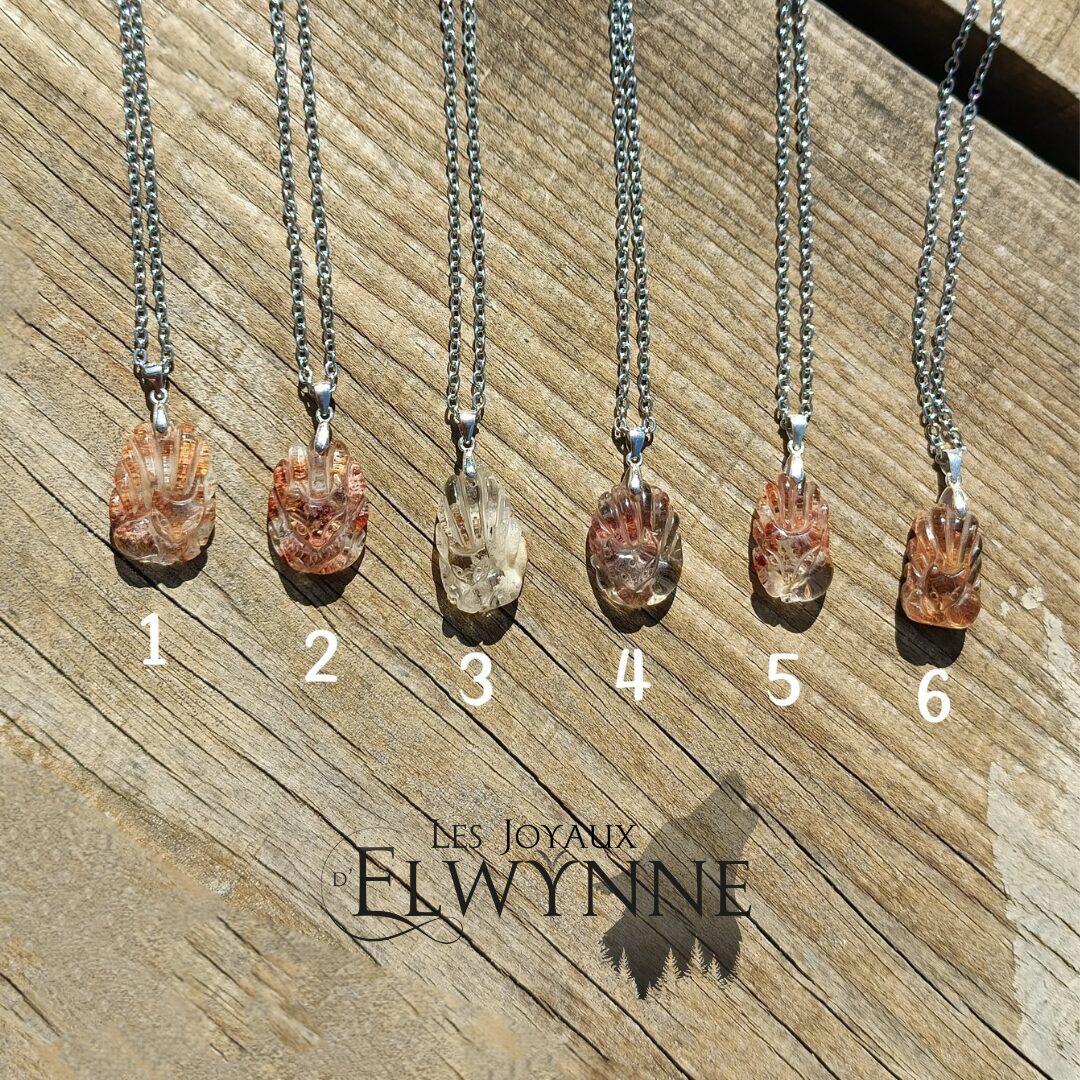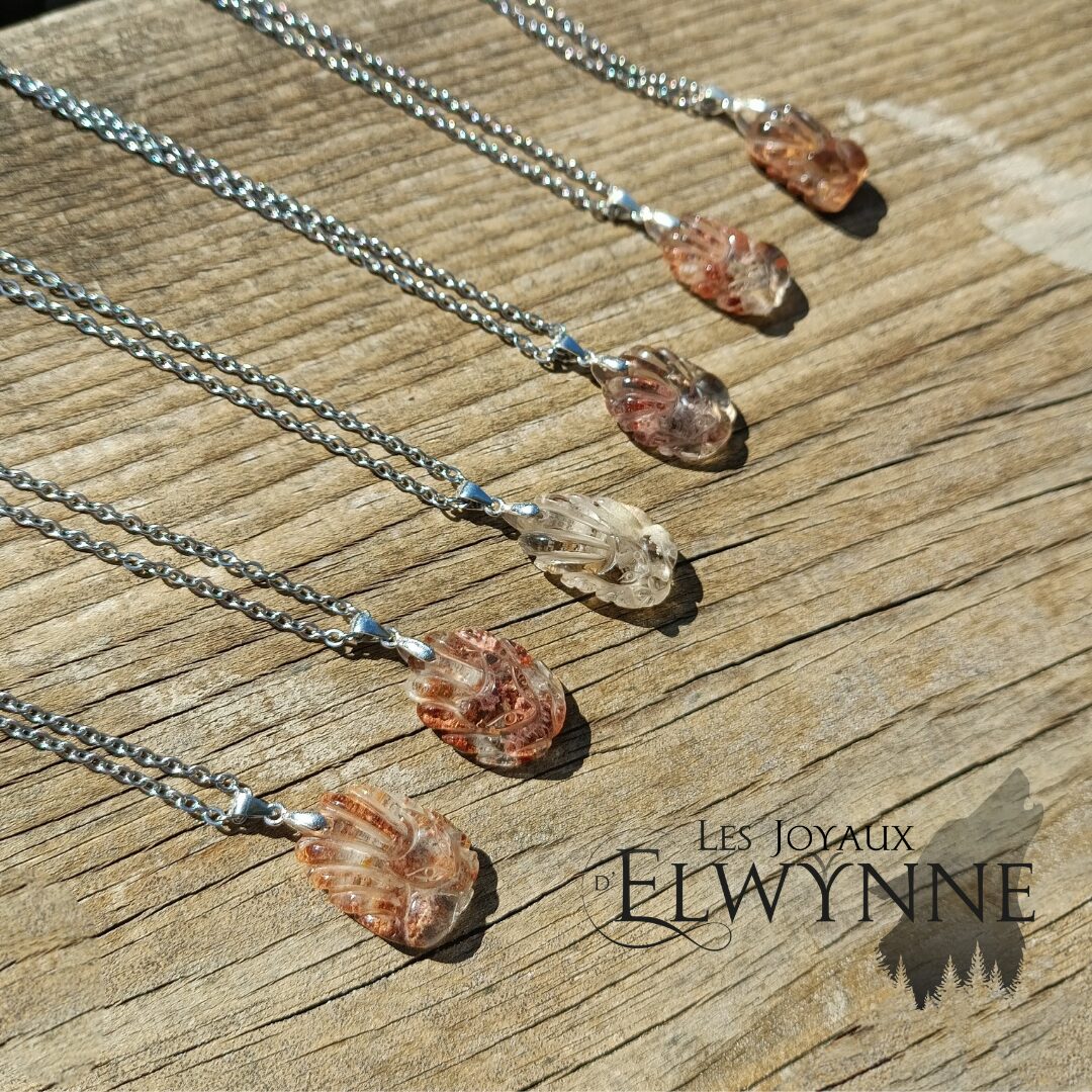 Pendentif Kitsune (Renard) en Quartz Jardin/Lodolite 💚🦊, bélière en argent 925 et chaîne en acier inoxydable.