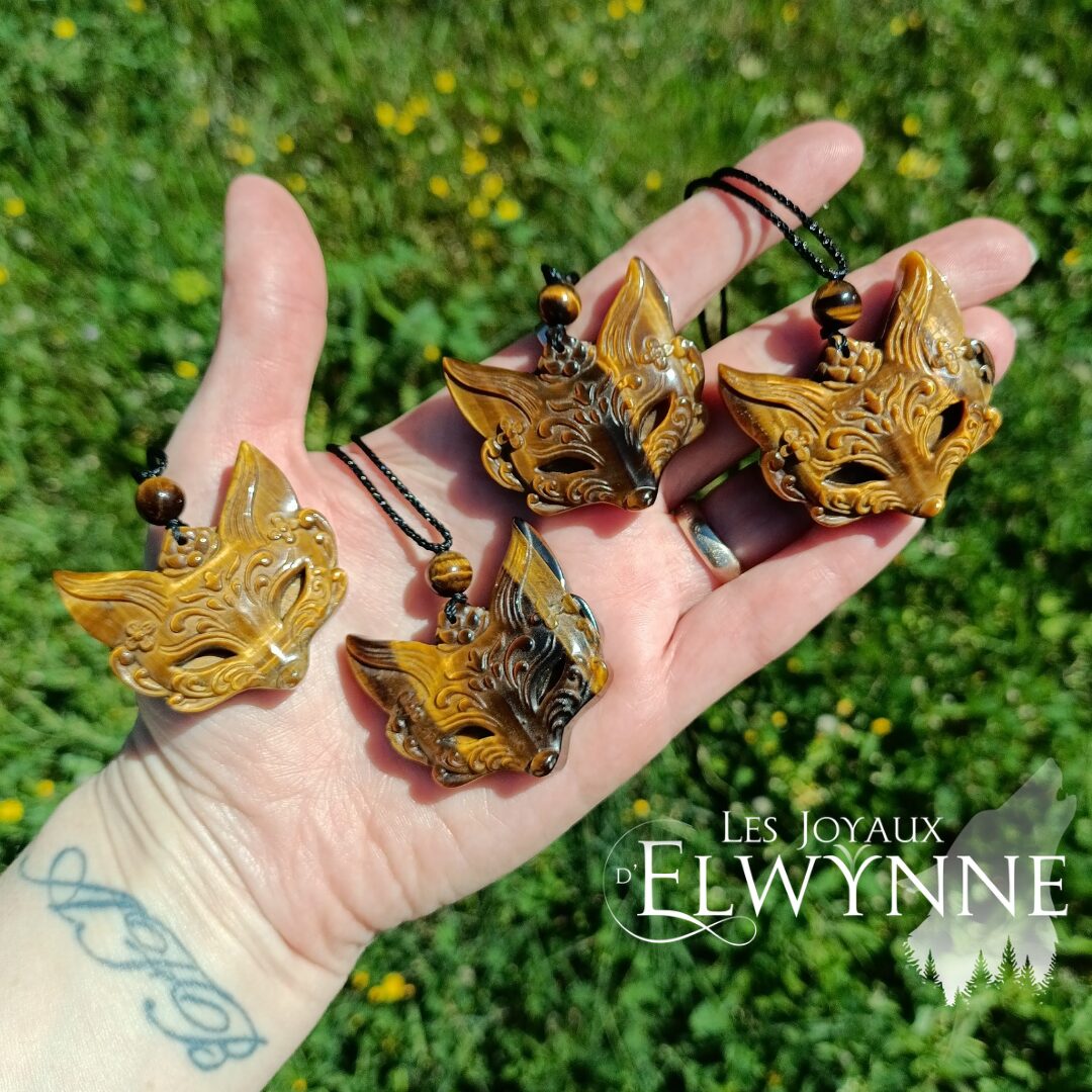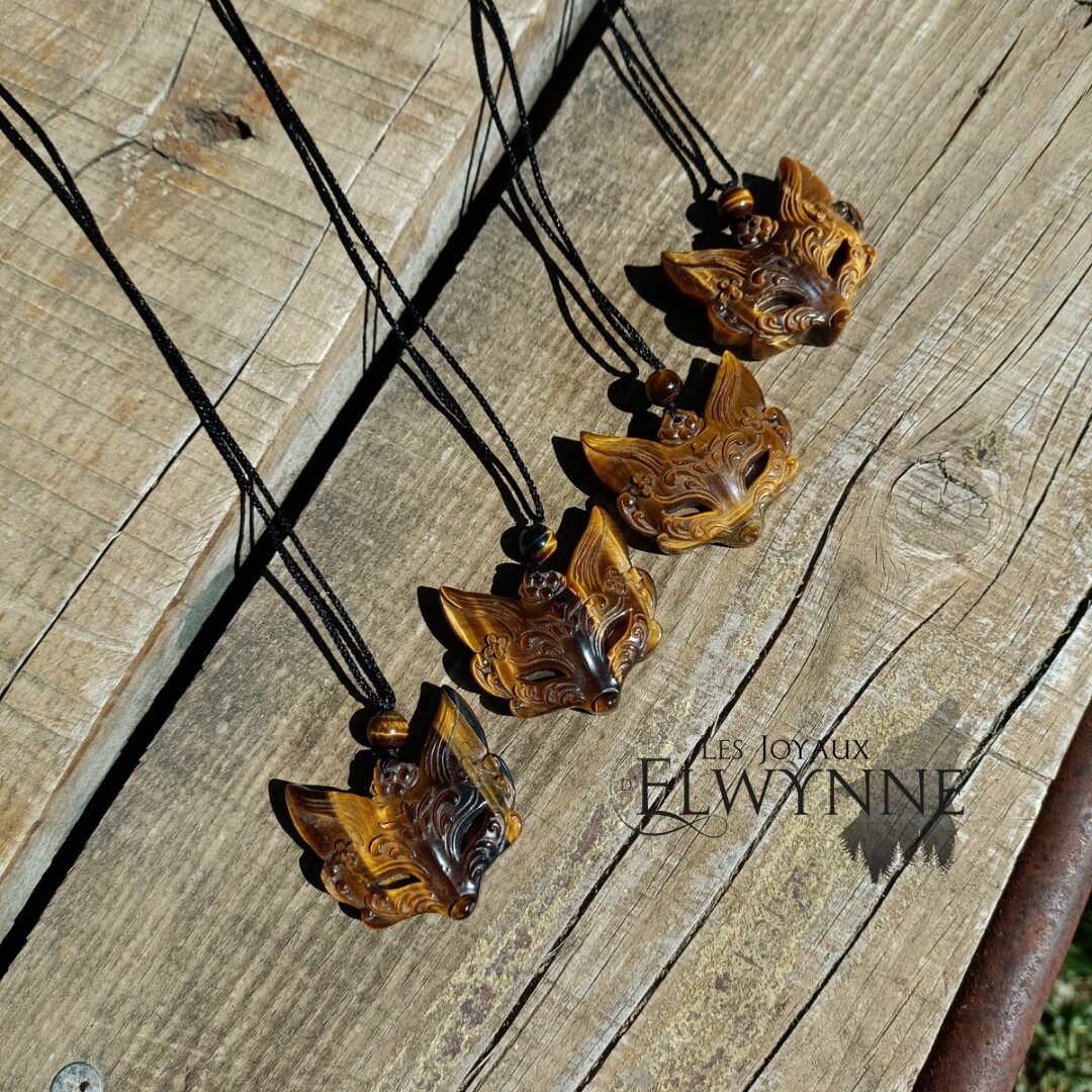 Pendentif Masque de Kitsune (Renard) en Oeil du tigre