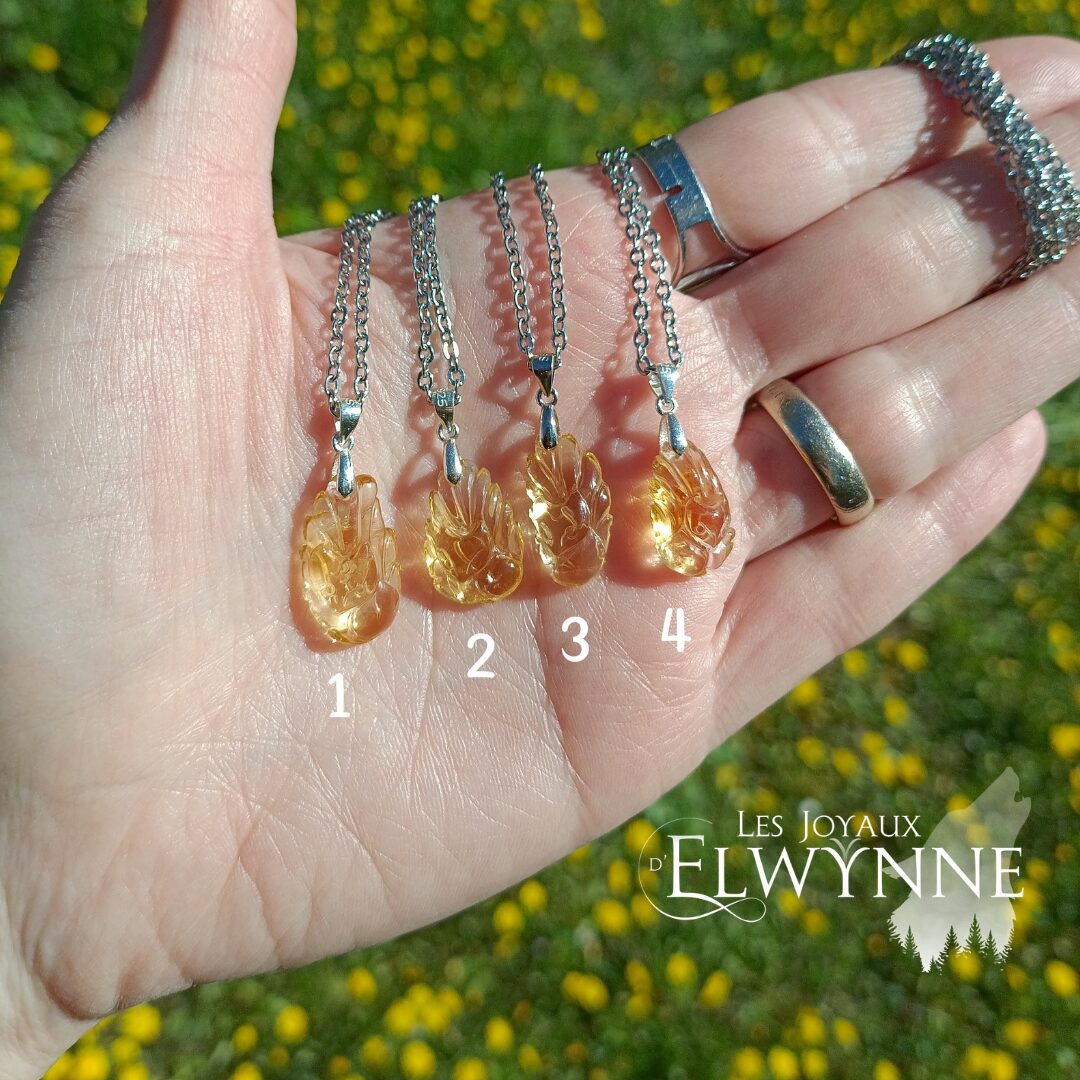 Pendentif Renard (Kitsune) en citrine