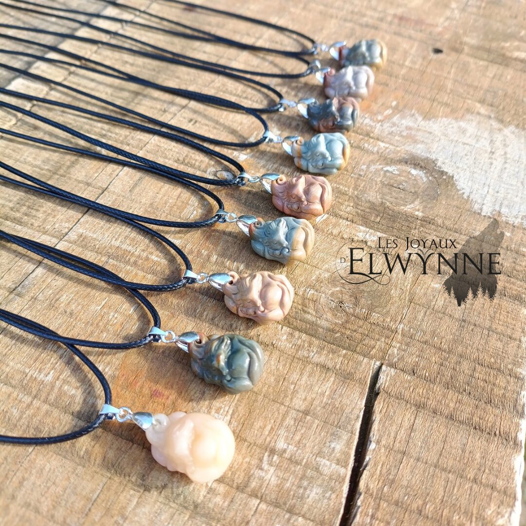 Pendentif Renard (Kitsune) endormi en Agate Alashan
