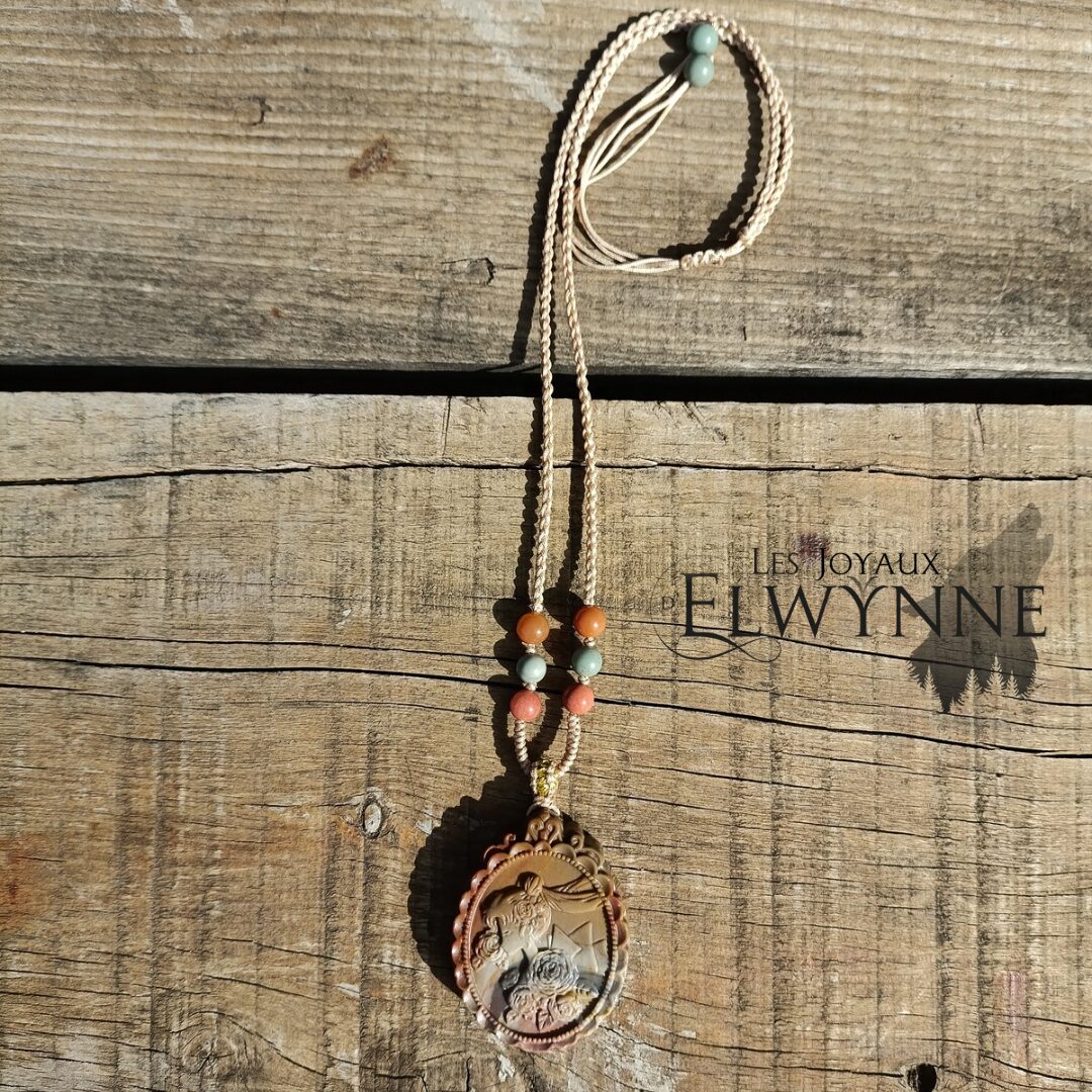 Pendentif Sailor Moon 🦸🏼en Agate Alashan, accompagné de ces perles également en Agate Alashan, cordon réglable.